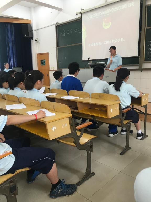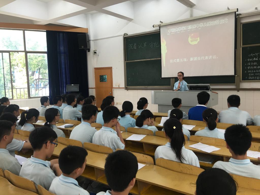仪式在庄严的团歌声中拉开序幕。王书记宣读了关于批准新团员入团的决定,并代表学校向新团员表示祝贺,寄予厚望。