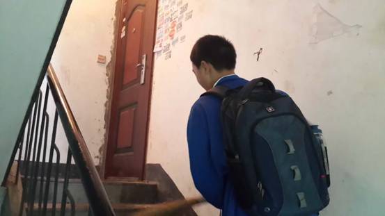 狭小的楼道,挥动的扫帚,认真的背影。