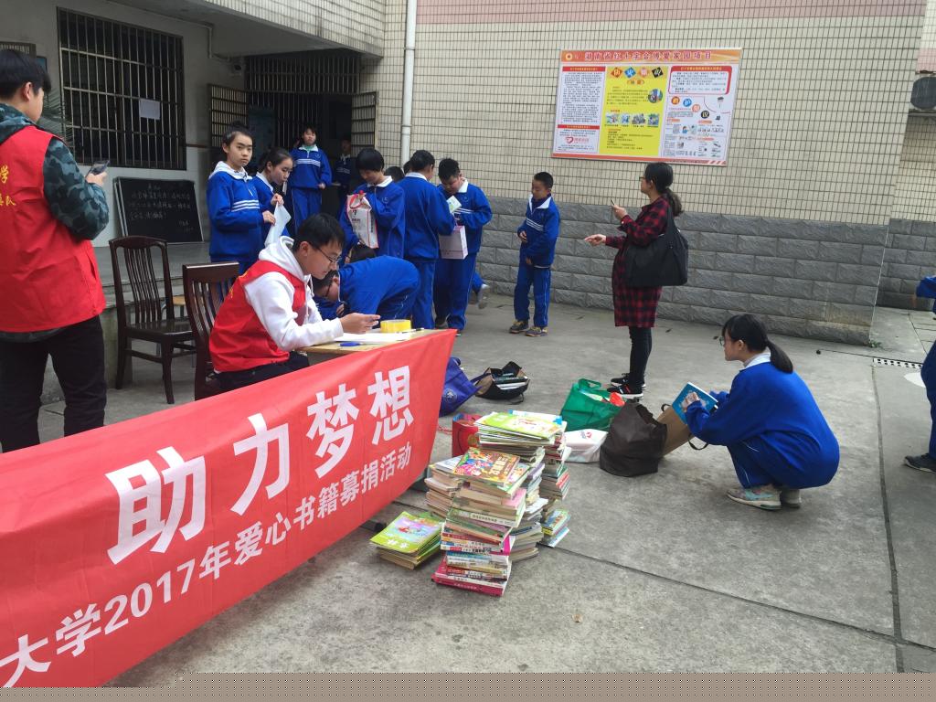 2017年3月2日下午,在中南大学校团委的指导下,我校团委组织开展了一次主题为“用一本书为孩子的梦想插上翅膀”的爱心书籍捐赠活动,得到了全校师生的大力支持。