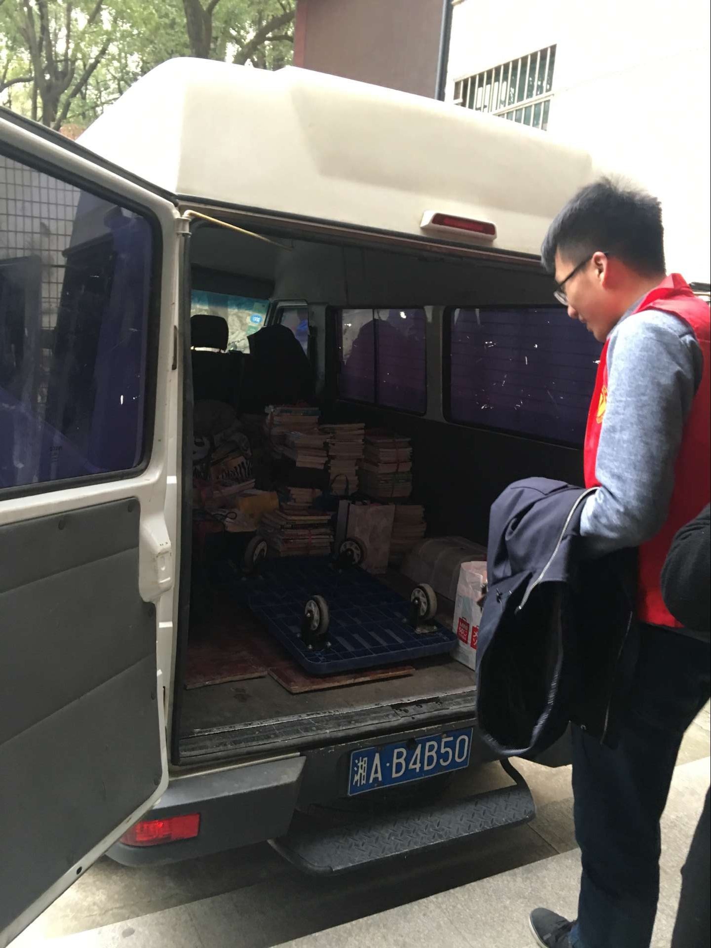 在志愿者来搬运书籍的时候,我校综合办周建老师热心地将自己的新书拿出来,为此次捐赠活动画上了圆满的句号。
